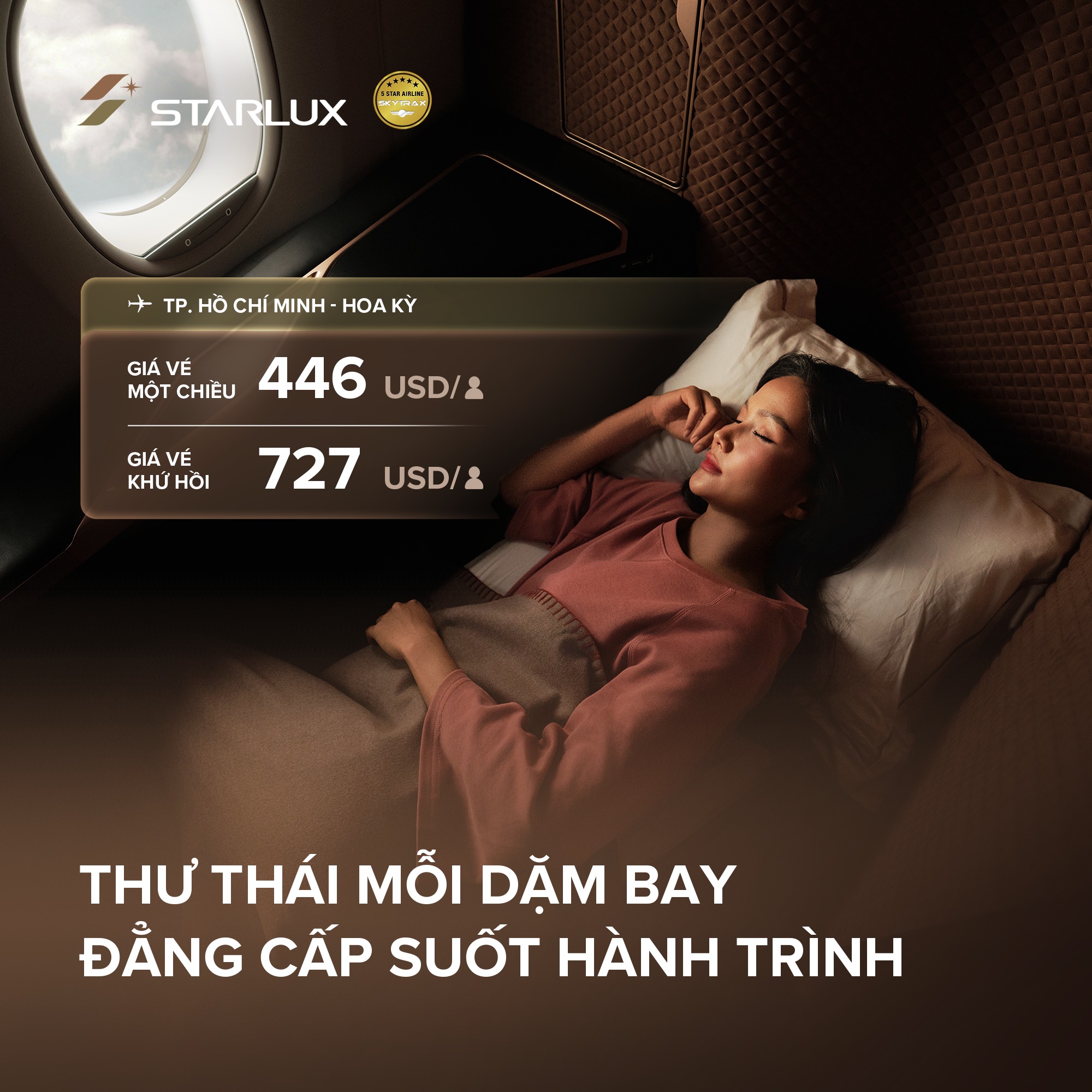Hành trình bay giữa TP. Hồ Chí Minh và Hoa Kỳ không còn là những giờ bay mệt mỏi, mà trở thành chuyến du ngoạn thư thái giữa không trung với mức giá chỉ từ 446 USD.